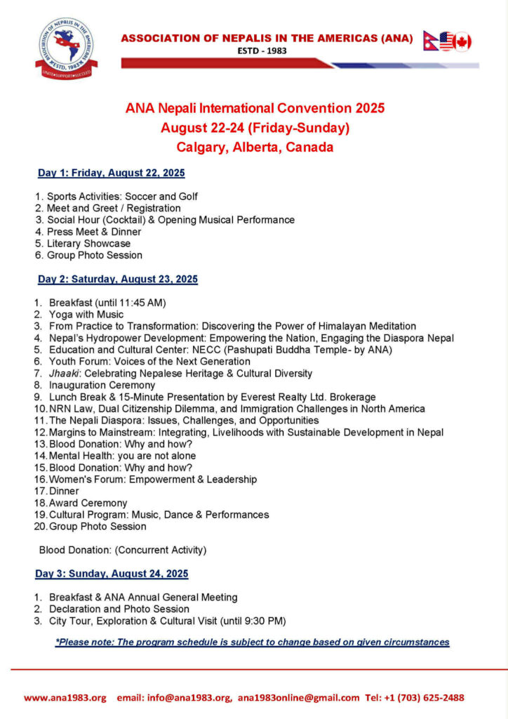 ANA Nepali International Convention Date: Aug 22-24, 2025